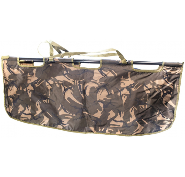 Tyčový vážící sak na úlovky. Skládací pevné tyče, silné zipy na obou stranách, pevná a odolná PVC tkanina pro komfort úlovku i snadné čištění, odtok vody na obou stranách, madla na přenášení, transportní obal. Kamufláž DPM. Rozměry: 120x35x46 cm, transportní rozměry: 67x20 cm, váha 1,4 kg.