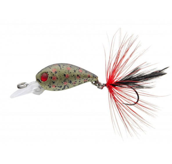 Mini nástraha pro ultra lehký lov pstruhů, okounů a jelce. Dodávané s Jednoháčky a velmi lákavým pírkem. I přes malou velikost, ale díky svému kompaktnímu, oblému tvaru, s touto nástrahou velmi snadno a přesně nahodíte do požadovaného místa.
