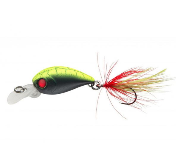 Mini nástraha pro ultra lehký lov pstruhů, okounů a jelce. Dodávané s Jednoháčky a velmi lákavým pírkem. I přes malou velikost, ale díky svému kompaktnímu, oblému tvaru, s touto nástrahou velmi snadno a přesně nahodíte do požadovaného místa. Velmi aktivní a variabilní akce.