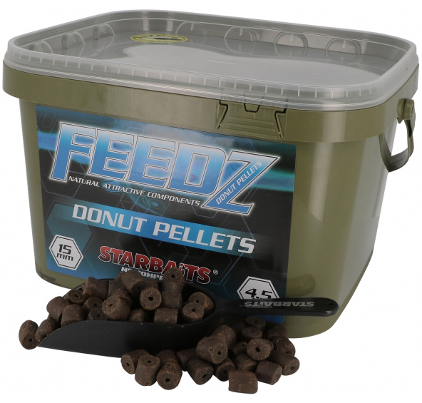 Feezd Donuts pelety s dírkou jsou složeny z vysoce kvalitních rybích mouček, velkého obsahu rybích olejů, aminokyselin a přírodního cukru. Navíc jsou Donuts pelety obaleny aktivní povrchovou složku, které se i ve studené vodě rychle uvolňuje a okamžitě láká ryby i z velké vzdálenosti. Ideální nástraha na háček i na masivní vnadění. Dodáváno v praktickém kbelíku a lopatkou ZDARMA.