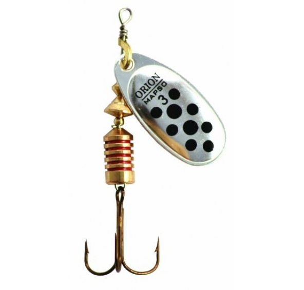 Klasický model rotační třpytky Mapso Orion. Třpytky můžete, díky rotaci křidélka pod úhlem 60 stupňů použít i v mělké a zarostlé vodě. Vyznačuje se velmi kvalitním chodem v proudu i proti proudu.