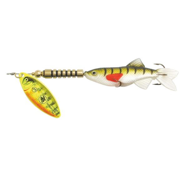 Perfektní nástraha pro lov pstruhů, okounů a štik. Jedná se o kombinaci rotační třpytky, která dravce zaujme a vyprovokuje, a gumové rybky, která přidává na důvěryhodnosti. Háčky VMC zajišťují snadné zaseknutí a bezproblémové zdolání i opravdu velkých ryb