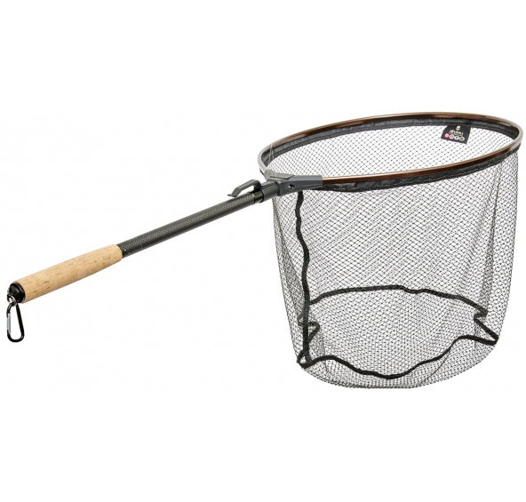Lehký podběrák pro lov pstruhů a jiných ryb při brodění. Pogumovaná síťka pro maximální šetrnost k rybám. Odlehčený rám a rukojeť potažená korkem pro příjemnou manipulaci. Na konci rukojeti je magnetický úchyt s karabinou pro připevnění na vestu nebo tašku. Klip pro zacvaknutí k opasku. Prodloužená dvoudílná teleskopická rukojeť pro snadné podebírání větších ryb nebo z vyššího břehu. Délka max. 164 cm, skladná délka 59 cm, rozměr 40x50 cm, hloubka 40 cm, síťovina 6x6 mm, váha 396 g.