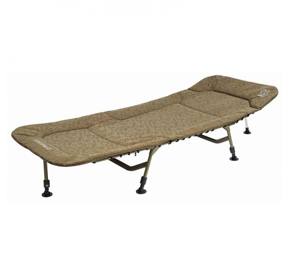 Základ tvoří čtyřy nožky a lehátko je opatřené na každém konci jednou extra nožkou. Specifikace: - rozměry: 200 x 78 x 34 - šestinohé lehátko - camo vzor - flatové provedení - rychlé složení