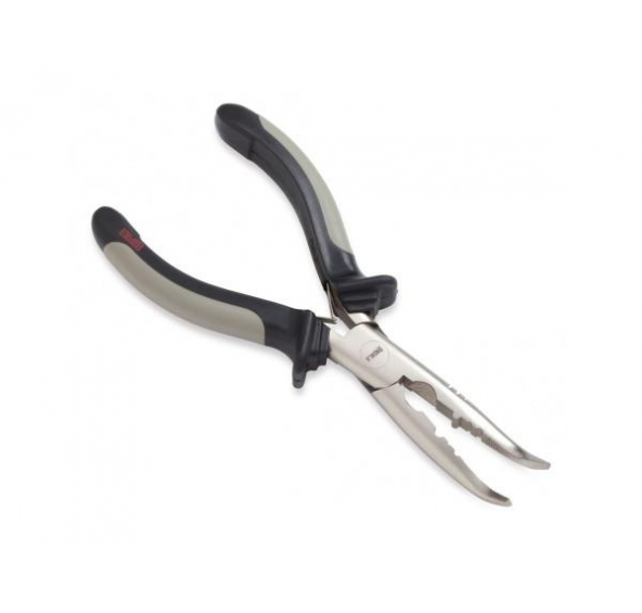 RCPC6 Curved Fisherman´s Pliers - nejoblíbenější 16,5 cm dlouhé zahnuté kleště z poniklované uhlíkové oceli a s dvojitou pružinou pro snažší vyproštění háčků, vybaveny jsou patentovaným nástrojem Rapala pro seřízení chodu woblerů