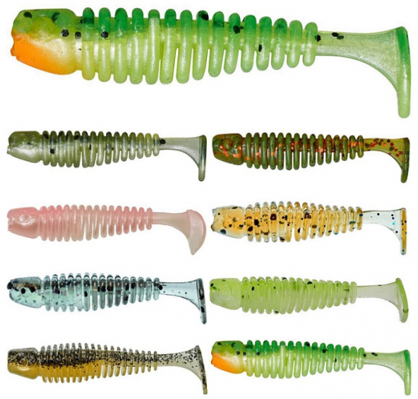 Nástraha s vroubkovaným tělíčkem s velice jemným ocáskem. Je vhodná jak na vertikální, tak i klasickou přívlač. Měkký ocásek krásně pracuje i při velmi pomalých pohybech. Vroubkované tělíčko přidává druhý dráždivý pohyb vlněním jednotlivých vroubků. Jsou zhotoveny z té nejjemnější gumy pro jejich perfektní chod a napuštěné speciálním aromatem lákajícím dravce. Vhodné na okouny a pstruhy. Balení 15 ks.