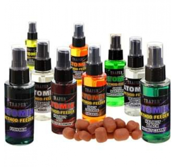 Spreje Atomix Method Feede slouží k postřiku nástrahy na háček a tím může rybář v určitých situacích zatraktivnit nástrahu. Aplikuje se zejména v situacích, kdy ryby nepřijímají aktivně potravu. Stejně tak lze sprejem postříkat naplněné krmítko při lovu na položenou.