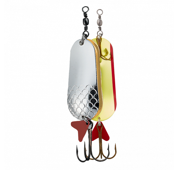 Popis produktu Effzett Plandavka Twin Spoon Sinking Silver Gold 8cm 45g