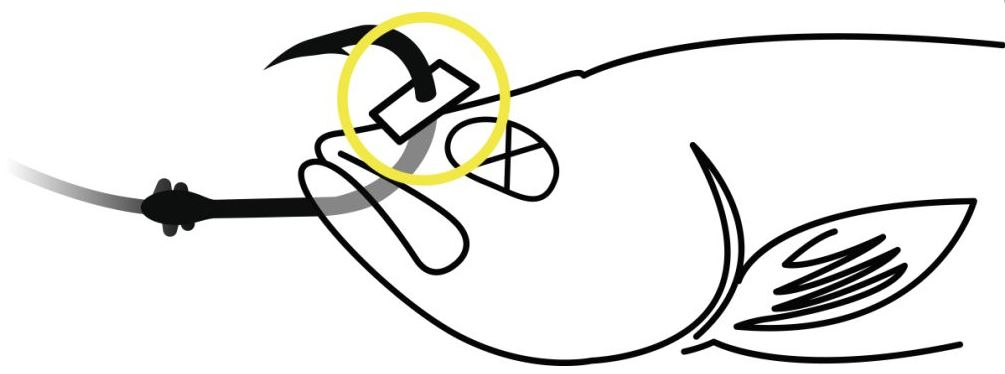 Přímo na špičce háčku musí být návnadové ryby a červi zajištěni odolnou, přesto měkkou a co nejméně nápadnou gumou...