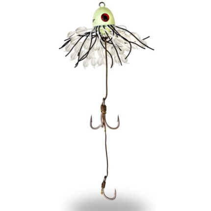 Speciální dráždidlo pro lov s vábničkou a vertikální rybaření. Dlouhé gumové střapce umožňují nástraze dráždivě pulzovat pod vodou a zlákají tak i velmi opatrné sumce na revírech se silným rybářským tlakem k záběru. Unikátní: toto je tichý sumcový teaser bez skleněných korálků, který svou účinnost projeví především ve dnech, kdy ryby špatně berou!