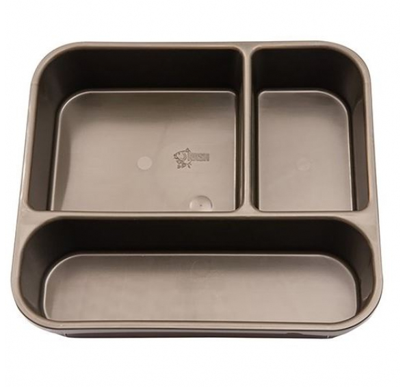 Tento zásobníkový podnos se snadno oddělává a je rozdělen do tří oddílů pro oddělení Vašich nezbytných potřeb pro rychlé opětovné nastražení nebo výměnu návazců a jiných prvků montáže.