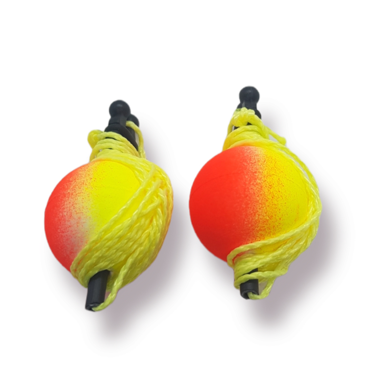 Průměr 25 mm, čihátko se používá mezi očka prutu, na vlasec se připne pomocí plastového klipu, gumička slouž k nastavení přítlaku Pletená šňůrka je 1m dlouhá a přiváže se k vidličce. Vyrobeno z polystyrénu. V balení 2 ks....
