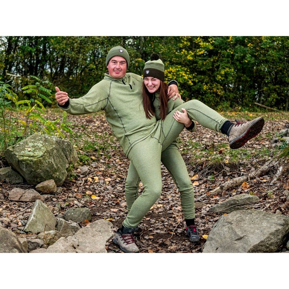 Naše vysoce kvalitní termoprádlo řady DELUXE, je vyrobeno v kombinaci 40% bavlny a 60% polyesteru, což zajistí pohodlí, komfort a je velmi příjemné na dotek. Provedení ve světle zelené barvě s černým prošíváním a lemy na rukávech. Díky decentnímu barevnému provedení, lze termoprádlo používat jak na rybách, tak při sportovních nebo outdoorových aktivitách. Vrchní část má vyšší límec na zip, což ochrání před chladem Váš krk a delší rukávy zakončeny elastickými lemy, které zabrání nežádoucímu sjíždění při oblékaní další vrstvy oblečení.