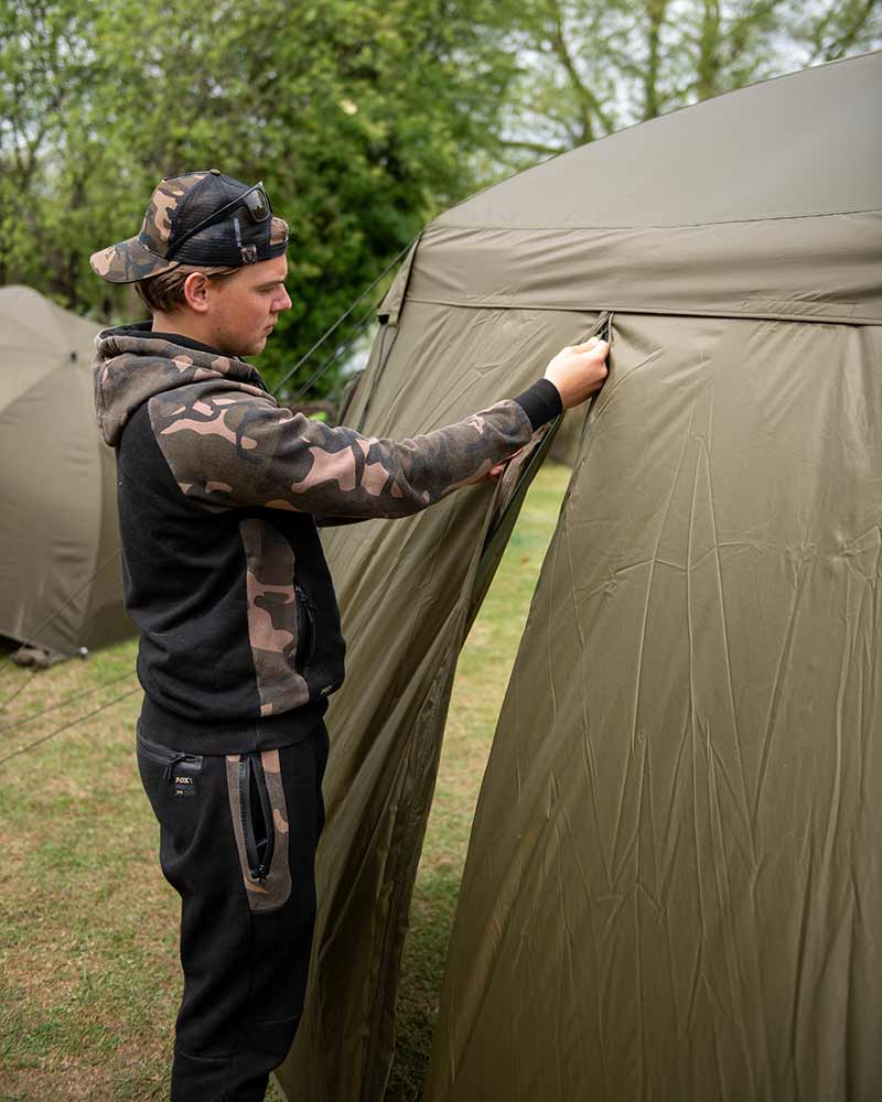 - Zadní panel s průchodem na zip lze použít k prodloužení bivaku/brolly.