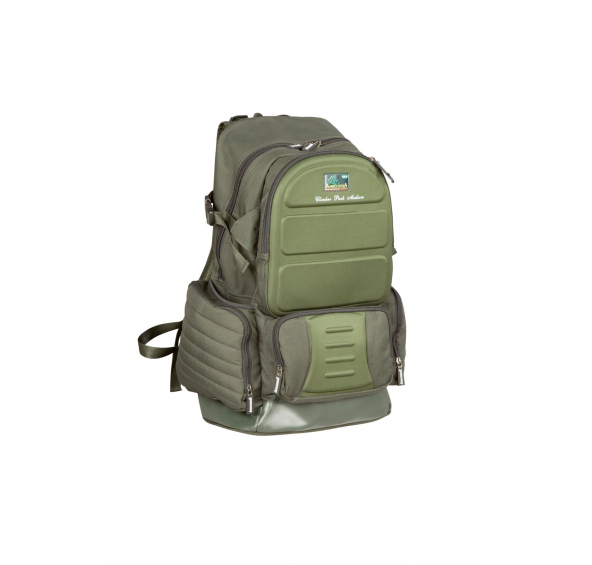 Vynikající batoh, vhodný pro rybáře. Každý z řady těchto batohů nabízí dostatek místa pro uložení výbavy a oblečení potřebné pro rybolov. Všechny modely mají anatomicky tvarovaná, vyztužená záda a pás k zajištění. Batohy mají dno z PVC, které chrání proti vlhkosti a nečistotám. Samozřejmostí je velké množství pohodlných, silně polstrovaných postraních kapes s velmi robustními zipy. Přední kapsy jsou ze speciálního materiálu, který zároveň chrání před vlhkostí a zároveň slouží, jako výztuha, čímž docílíme toho, že lze v těchto kapsách přepravovat i velmi citlivá zařízení, jako mobilní telefony, fotoaparáty či kamery. Materiál použitý při výrobě je Nylon 600D v kombinaci s PVC vrstvou, vše odolné vůči vodě.Medium
