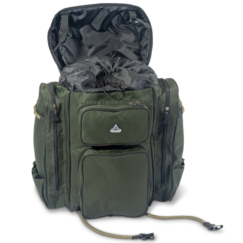 Celý popisAnaconda batoh Rope Runner je inovativní a multifunkční rybářský batoh s praktickými provazovými konstrukcemi. Batoh je vybaven ramenními popruhy, na které lze pomocí karabinek připevnit drobné nástroje. Pro maximální pohodlí je opatřen ergonomickým polstrováním na zádech. Hlavní úložný prostor je mimořádně prostorný a lze jej bezpečně uzavřít díky systému Click Connector, který zajistí stabilitu a ochranu vybavení. Na každé straně batohu najdete 4 držáky na vidličky, což ocení každý kaprař.