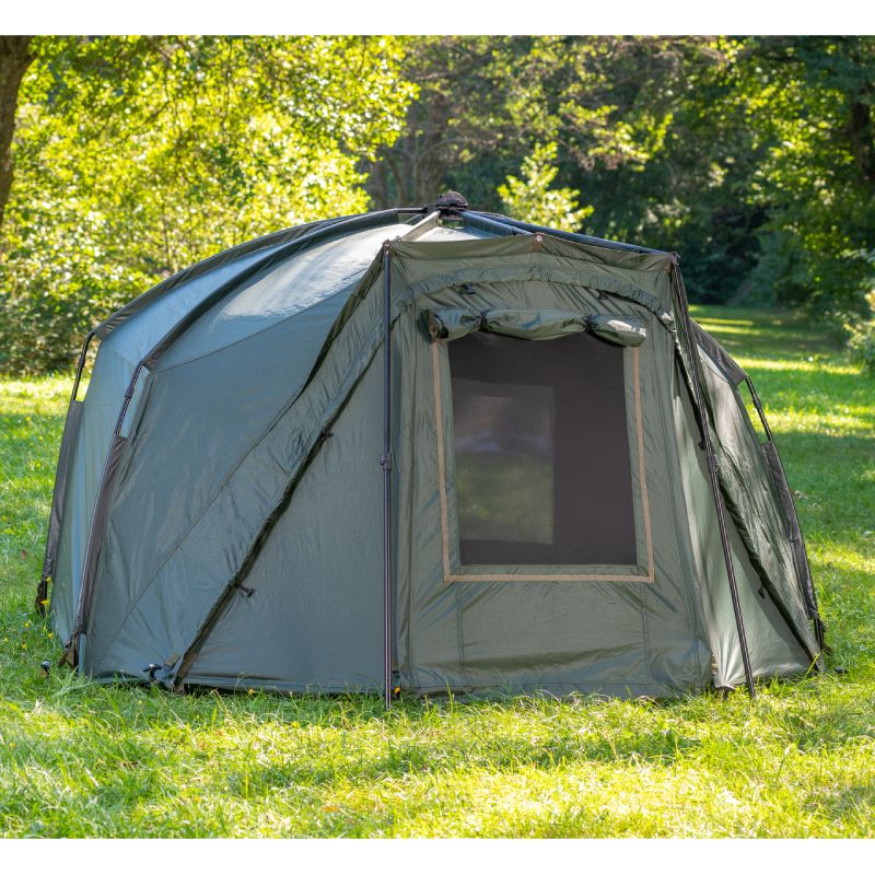 Tři vzpěry na přední straně slouží k natažení stanu při montáži a slouží také ke zpevnění střechy ve vstupní části. Díky kompaktnímu designu a mega stabilnímu systému vzpěr je Hi-TroX Tentacle extrémně odolný vůči povětrnostním vlivům. Díky našemu inovativnímu rychlouzávěru „Tentacle Lock“ lze tento stan postavit a rozložit extrémně rychle. Ideální pro úsporu drahocenného času. Dvě krásná velká okna s moskytiérami v zadní části stanu zajišťují optimální cirkulaci vzduchu i v létě.