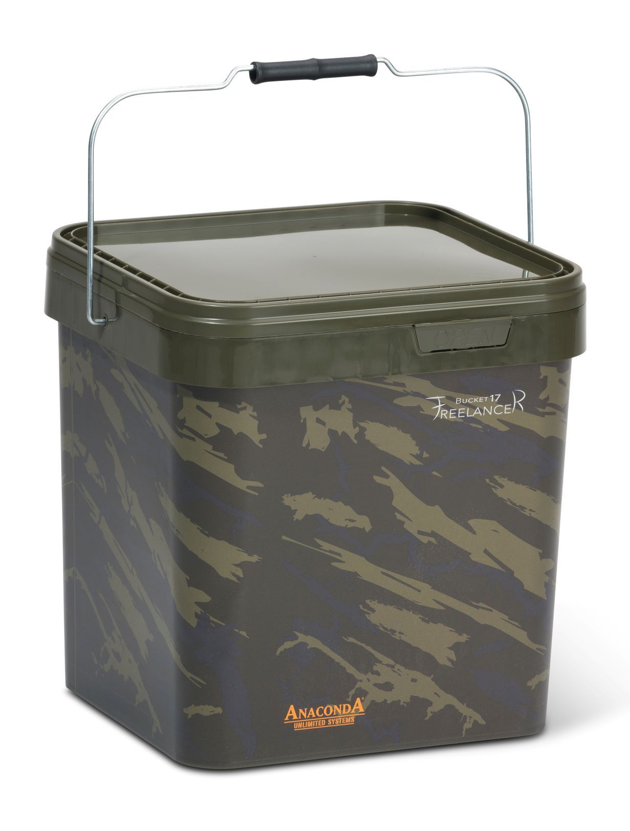 Kbelík o objemu 17 litrů. Ideální pro boilies a ostatní krmiva. Praktické kovové držadlo.
