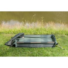 Všestranná podložka pod ryby. Pokud chodíte na svá oblíbená místečka dál, určitě oceníte malé přepravní rozměry. Podložka je konstruována tak, abyste ji byli schopni rozdělat opravdu rychle. Během 2 minut máte vše připravené a rybu můžete bezpečně položit dovnitř. Za zmínku určitě stojí přikrývací plachta, kterou připevníte pomocí suchého zipu. Pokud si potřebujete v rychlosti připravit fotoaparát, zabrání vašemu úlovku vyskočit a ublížit si. Zabraňuje také zbytečnému osychání ryb. Největší výhodou je však samotná, 4 cm vysoká matrace, která je odnímatelná, má na sobě poutka, za která ji můžete připevnit, pomocí kolíčků (součást balení), na libovolné místo. Nemusíte tak u vody stále tahat celou podložku. Materiály jsou vybírány tak, aby co nejrychleji osychaly. Když budete odjíždět zryb, měla by být podložka téměř suchá a nebude vám následně smrdět doma. • Rozměry: 120 x 60 x 25 cm • Materiál vně: 600D polyester, matrace: pogumovaná • Přepravní rozměry matrace: 60 x 35 x 12 cm • Přepravní rozměry kompletní: 65 x 40 x 17 cm • Včetně 4 kolíčků v boční kapse • Včetně stabilizační tyče • Rychlé sušení...