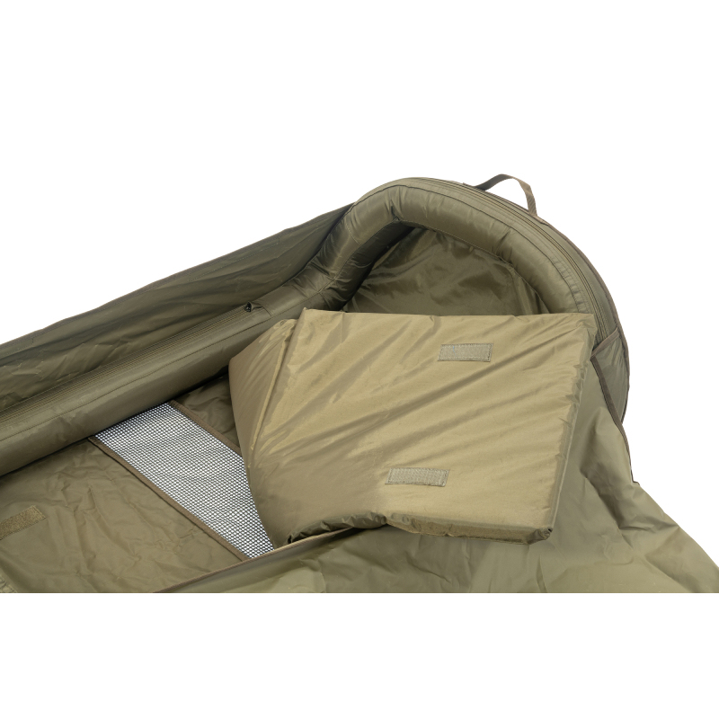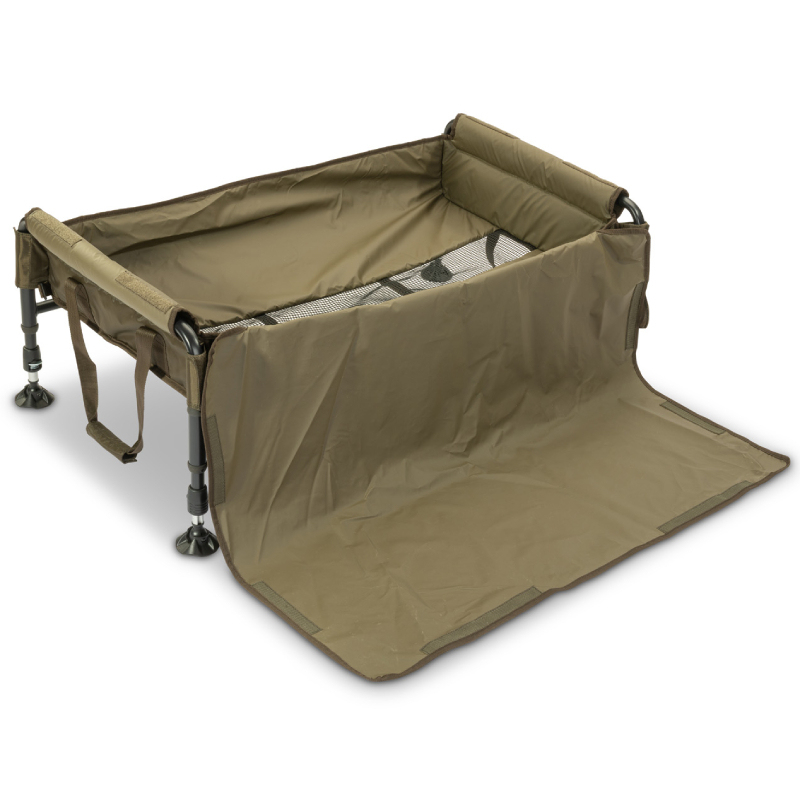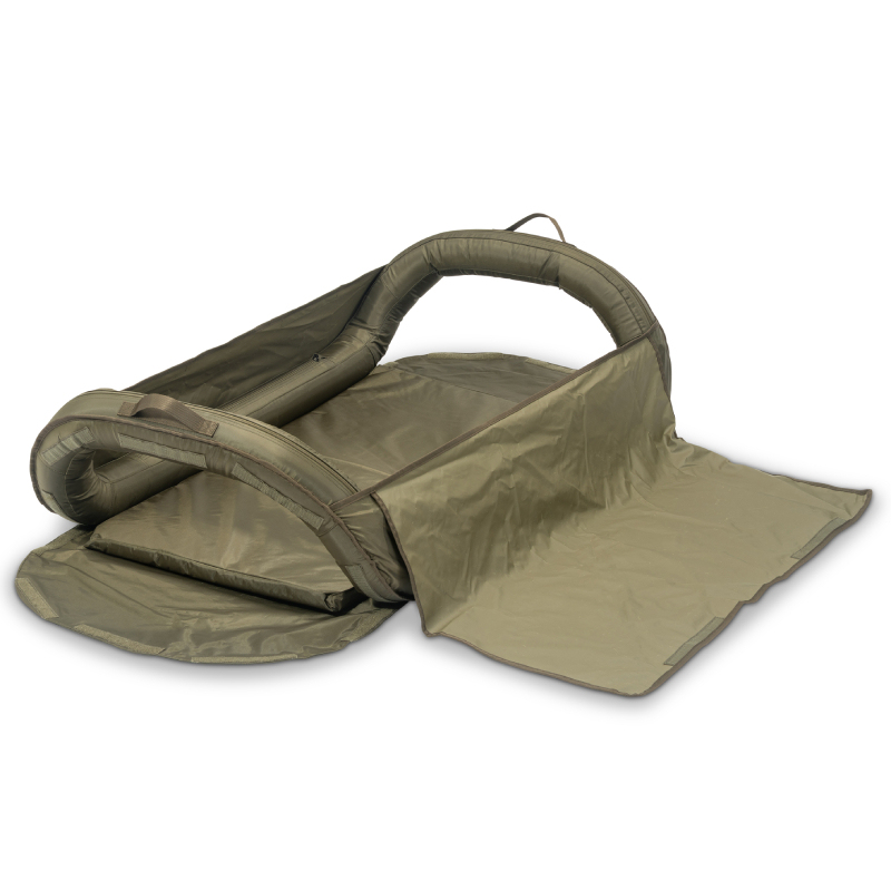 Součástí je krycí plachta se suchým zipem, která chrání rybu a zabraňuje vyskočení při manipulaci. Podložka je vybavena pevnými transportními madly a bočními pásky na suchý zip, díky nimž lze stáhnout celý celek do velmi malého transportního tvaru.