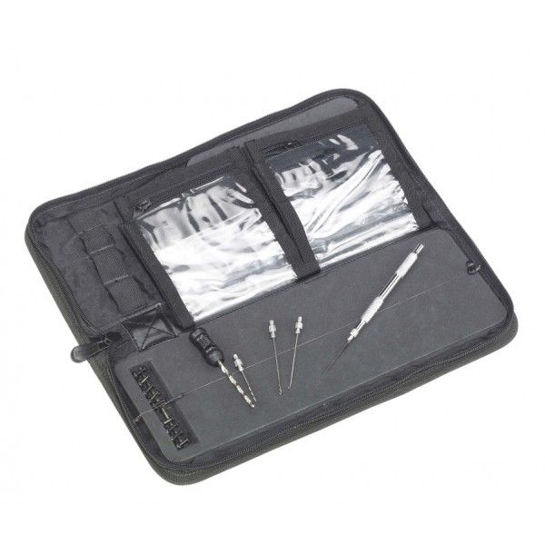 Pouzdro na dlouhé návazce. Obsahuje dvě desky z tvrdé pěny. (18 a 33cm) Součástí je 8 průhledných kapes na drobný materiál potřebný při výrobě návazců.