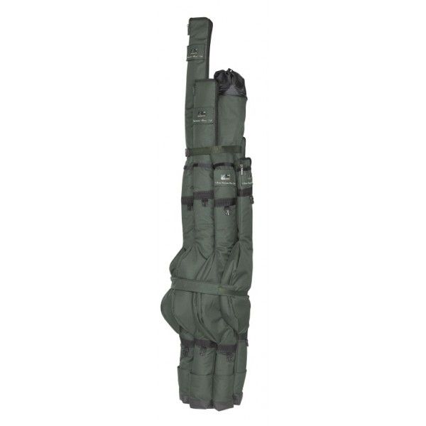 Toto velmi praktické pouzdro pojme vše, co je pro lov kaprů potřeba. Pouzdro má 4 kapsy, mimo to lze po stranách připnout až 4 přídavná pouzdra. Na pouzdře jsou různé průchodky a jiné vychytávky, aby se daly přepravovat věci kratší i delší. Vše jistí popruhy s klipy. Má dvě protáhlé boční kapsy na zip, kde se dá přepravovat vážící sak, podběrák, slunečník nebo dokonce malý stan. Toto pouzdro se nosí pohodlně i při plném stavu a větším zatížení. Na spodní straně má ochranný 5 cm široký PVC pás. Průměr hlavního tubusu je 22 cm, celá taška je silně polstrovaná a na její výrobu je použit vodoodpudivý polyester 600D. Rozměry jsou 170 x 25 x 25 cm, 13 ft. rozměry: 170 x 25 x 25 cm hlavní průměr 22 cm 4 oddělení, 4 suché uzávěry, 4 upevňovací body silný polstrovaný neoprenový ramenní popruh neoprenové držadlo materiál: 600D 5 cm vysoká PVC ochrana pro bezpečné postavení na zem přídavná pouzdra nejsou součástí dodávky...