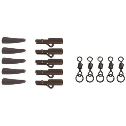 Praktická sada bezpečnostních klipů, která obsahuje tři komponenty. Bezpečnostní klipy na olovo jsou vhodné pro většinu pevných montáží s olovem. Společně s převlekem a obratlíkem spolehlivě fixují olovo. Při přetržení vlasce nebo při překážkách umožňují kaprovi snadné uvolnění od olova.