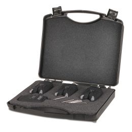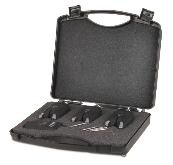 Technicky skvěle vybavené hlásiče s příposlechem. Samozřejmostí jsou funkce jako je citlivost, hlasitost a výška tónu. Vše snadno nastavitelné pomocí tlačítek. Mimořádně robustní kryt je díky speciálnímu povlaku odolný proti stříkající vodě a nárazům. K dispozici 2,5 mm vstup pro připojení swingerů. Každá sada je naprogramovaná jinak, proto u vody nehrozí, že na příposlechu uslyšíte záběry kolegy. Sada je dodávaná v robustním, polstrovaném pouzdře.