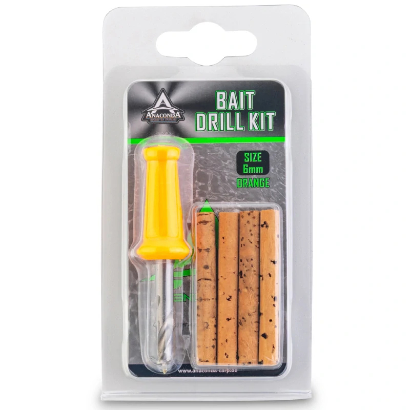 Sada s vrtákem o průměru 6 mm a korkovými válečky je ideální pro univerzální použití při kaprařině. Díky jednoduchému postupu snadno vyvrtáš otvor do nástrahy a vložíš korek, který zlepší vztlak a prezentaci na dně. Vhodná volba pro boilies středních velikostí.