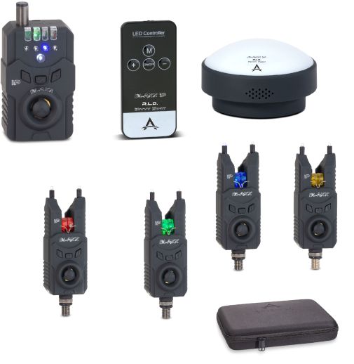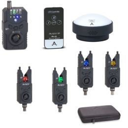 Blaxx IP je nová sada hlásičů s příposlechem, která je postavena na nejmodernějších technologiích a špičkové elektronice, díky čemuž se řadí na absolutní špičku v této kategorii produktů. Barva Led v hlásičích: červená, modrá, žlutá a zelená Hlásiče: Energeticky úsporné Dosah cca. 150 m za optimálních podmínek Jednoduchá obsluha pomocí tlačítek Sedmi stupňové ovládání hlasitosti + ticho Osm různých tónů Osmi stupňové nastavení citlivosti Barevný váleček, ve kterém vede vlasec, se při záběru rozsvítí LED pro klasický záběr i padáček (ryba jede k vám) voděodolné, nárazuvzdorné měkké pouzdro provoz na 2 x 1,5 V AAA baterie (není součástí balení) 2,5 mm konektor pro swingery Připoslech: Přenos 1:1 Jasná indikace „padáčku“ pomocí červeného LED osvětlení (až 20 sekund) Bílá LED bliká v případě „jízdy“ (20 sekund) a na 20 s se rozsvítí příslušná barva signalizátoru Výkonný reproduktor Vibrační alarm bez zvuku s přenosem 1: 1 Sedm různých nastavení hlasitosti + tichý / vibrační režim Osm různých tónů Voděodolné, nárazuvzdorné měkké pouzdro provoz na 2 x 1,5 V AAA baterie (nejsou součástí balení) Světlo do bivaku Vč. dálkového ovládání a regulátoru intenzity Integrovaný háček pro zavěšení a mangentický držák Světlo na čtení ve čtyřech různých barvách a pěti různých úrovních jasu až čtyři různé barvy, které blikají při záběru (příslušná barva hlásiče, na který přišel záběr) 3x AA baterie (nejsou součástí balení) CR 2025 baterie do dálkového ovládání (není součástí balení) Varování: Nelze kombinovat se sadou hlásičů Anaconda Nighthawk MGX-7 Přenos 1:1...