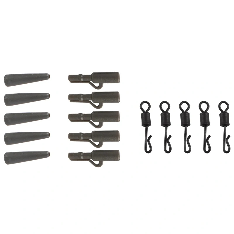 Praktická sada rychlovýměnných bezpečnostních klipů, která obsahuje tři komponenty. Bezpečnostní klipy na olovo jsou vhodné pro většinu pevných montáží s olovem. Společně s převlekem a rychlovýměnným obratlíkem spolehlivě fixují olovo.