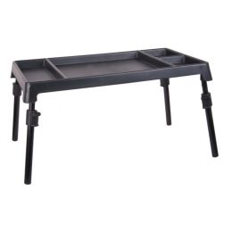 Stolek do bivaku. Díky němu lze v bivaku lehce udržet pořádek. Je rozdělen na několik oddělení, takže věci zůstávají na svém místě. Stolek má velmi nízkou hmotnost a velmi vysokou stabilitu. Má také nastavitelné nohy, takže není problém ho postavit kdekoliv v terénu.