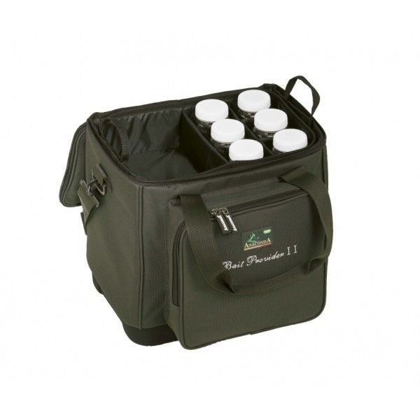 Jedná se o zvětšenou formu úspěšného Bait Provider I. Část tašky tvoří volný prostor, v další části jsou umělohmotné dózy o obsahu 100ml na dipy, aromata, apod. Materiál je voděodolný nylon 600D. Rozměry tašky jsou 36x 31 x32 cm.