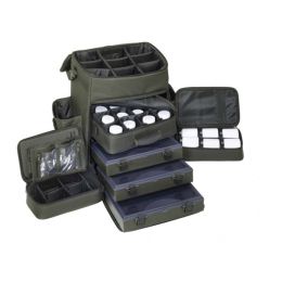 Touto taškou určenou výhradně pro rybáře jsme chtěli docílit toho, aby rybář měl vše potřebné na jednom místě. Je to multifunkční batoh se spoustou vestavěných kapes a různých boxů. Uvnitř batohu jsou tři velké krabice na drobný materiál a jedna taška na tekuté složky s dvanácti skleničkami. Při vytáhnutí těchto krabic lze použít tento výrobek, jako obyčejný batoh. V horní části se nachází další prostor s nastavitelnými přepážkami. Po stranách jsou dva odnímatelné boxy, kdy v jednom je 6 krabiček s kapacitou 250ml a v druhém 8 kapes na zip pro další materiál. Madla i ramenní popruhy jsou silně polstrované. Batoh má dále nastavitelný bederní pás. Materiál použitý při výrobě je voděodolný polyester 600D s PVC vrstvou a potahem odolávajícím vodě. Rozměry jsou56 x 35x48 cm.