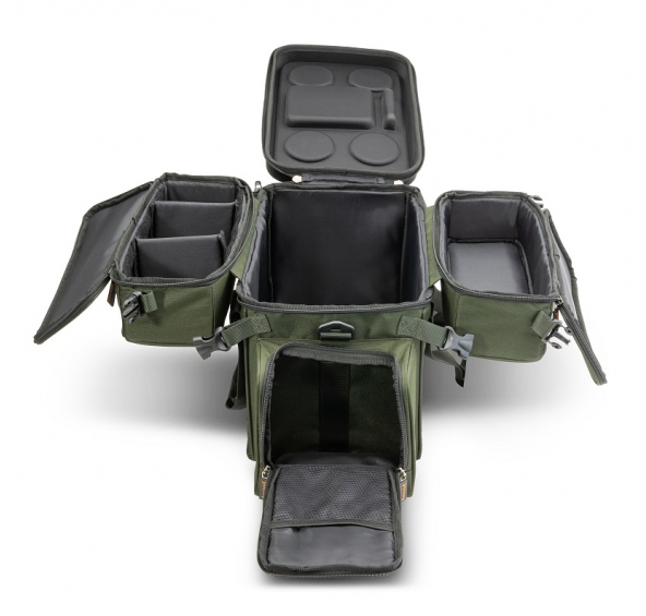 Tato taška opravdu dostojí svému jménu, protože ji můžete během okamžiku „transformovat“. Má vysoce kvalitní zipy, je vyrobena z vodoodpudivého materiálu nylon 600D. Při lovu oceníte i vyztužené víko, které slouží jako odkládací stolek. Ten je vytvarován tak, aby do něj přesně zapadly šálky nebo plechovky, a ještě vám zbylo dost místa na odložení rybářské bižuterie.