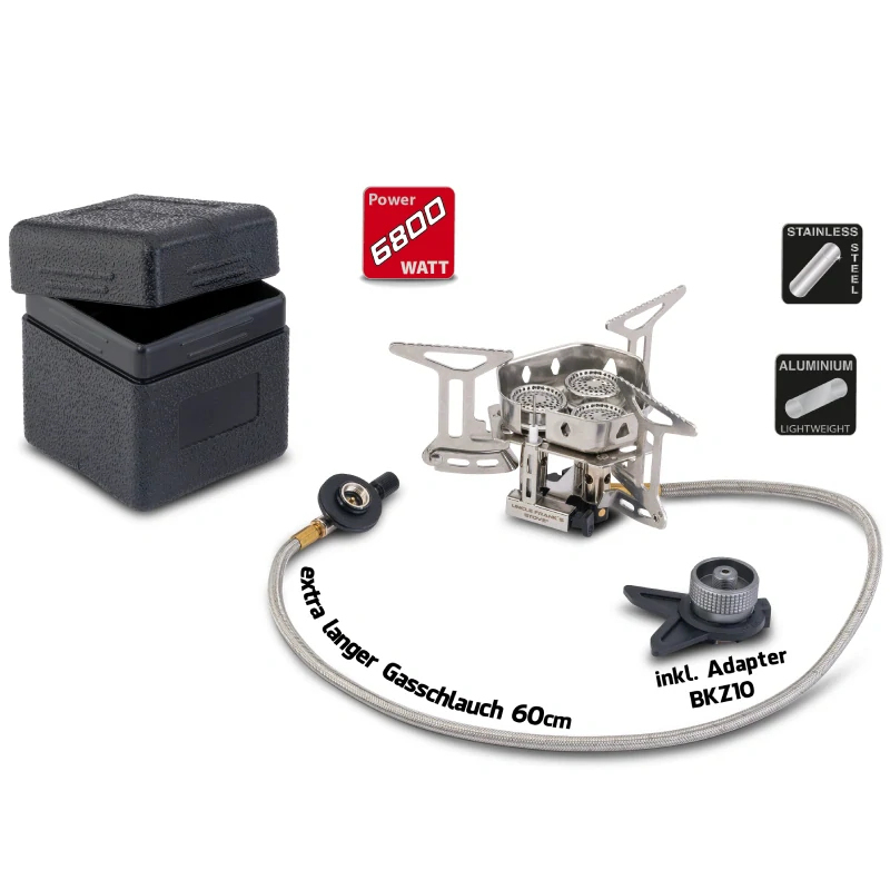 Stabilní rám vyrobený z hliníkové slitiny a nerezové oceli, přesná regulace plynu, spolehlivé piezo zapalování a mosazné součástky zajišťují maximální pohodlí a bezpečnost při používání. Ať už si chcete připravit chutné jídlo u vody nebo během kempování, tento vařič vám poskytne výjimečný výkon a spolehlivost.