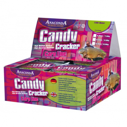 V minulosti se dbalo na dokonalé maskování, ale nemusí to nutně vést k úspěchu! Možná je lepší vsadit na rybí zvědavost? Začali jsme tedy testovat vlasec s názvem "Candy Cracker", s velmi jasným cílem. Pestrý, barevný, poutavý, jak je to jen možné s účelem vzbudit zvědavost ryb. A kupodivu se výsledky dostavily velmi rychle. Zvědavost samozřejmě zvítězila a na háčku se objevovala ryba za rybou. Nejlépe funguje na vodách, kde je velký rybářský tlak, a ryby jsou opatrné. Vlasec má pět barev, které se po 20 cm střídají (oranžová, fialová, bílá, růžová a zelená).