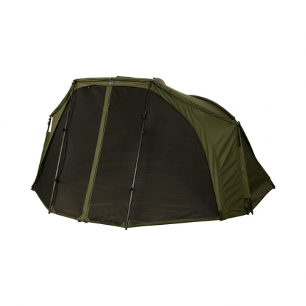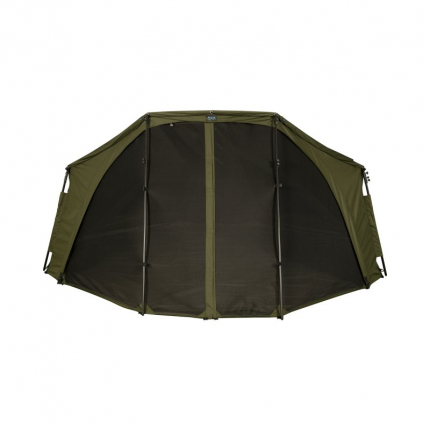 Připevnění panelu k bivaku je velice jednoduché a rychlé. Stačí odepnout přední panel bivaku a pomocí zipu na jeho místo připevnit moskytiérový panel. Další výhodou tohoto panelu je snadné proudění vzduchu v teplých letních měsících. Zároveň Vám nijak neomezuje výhled z bivaku, takže Vám už nic neuteče. Dále bude v bivaku mnohem více světla, čímž se zvýší i komfort uvnitř bivaku. Na vrchní straně se nachází úchyty, díky kterým můžete srolovat dveře a boční panely a jednoduše vytvořit otevřený přístřešek bez nutnosti odepínání panelu.