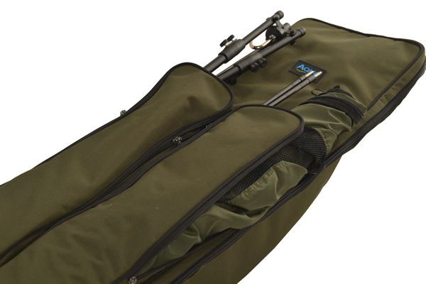 Pokud hledáte pro své pruty maximální ochranu, již dále nehledejte! Obal na pruty Full Rod Holdall je zcela uzavíratelný, silně polstrovaný, se silnými lemy a perfektní, pevnou konstrukcí. Pojme pohodlně 5 připravených prutů a problém mu nedělají ani 50mm očka a velké „big pit“ navijáky. Prostor pro navijáky je vyztužený a silně polstrovaný tak, aby držel tvar a Vaše navijáky byly v naprostém bezpečí. Pruty uvnitř pouzdra uchytíte pomocí pásek na suchý zip.