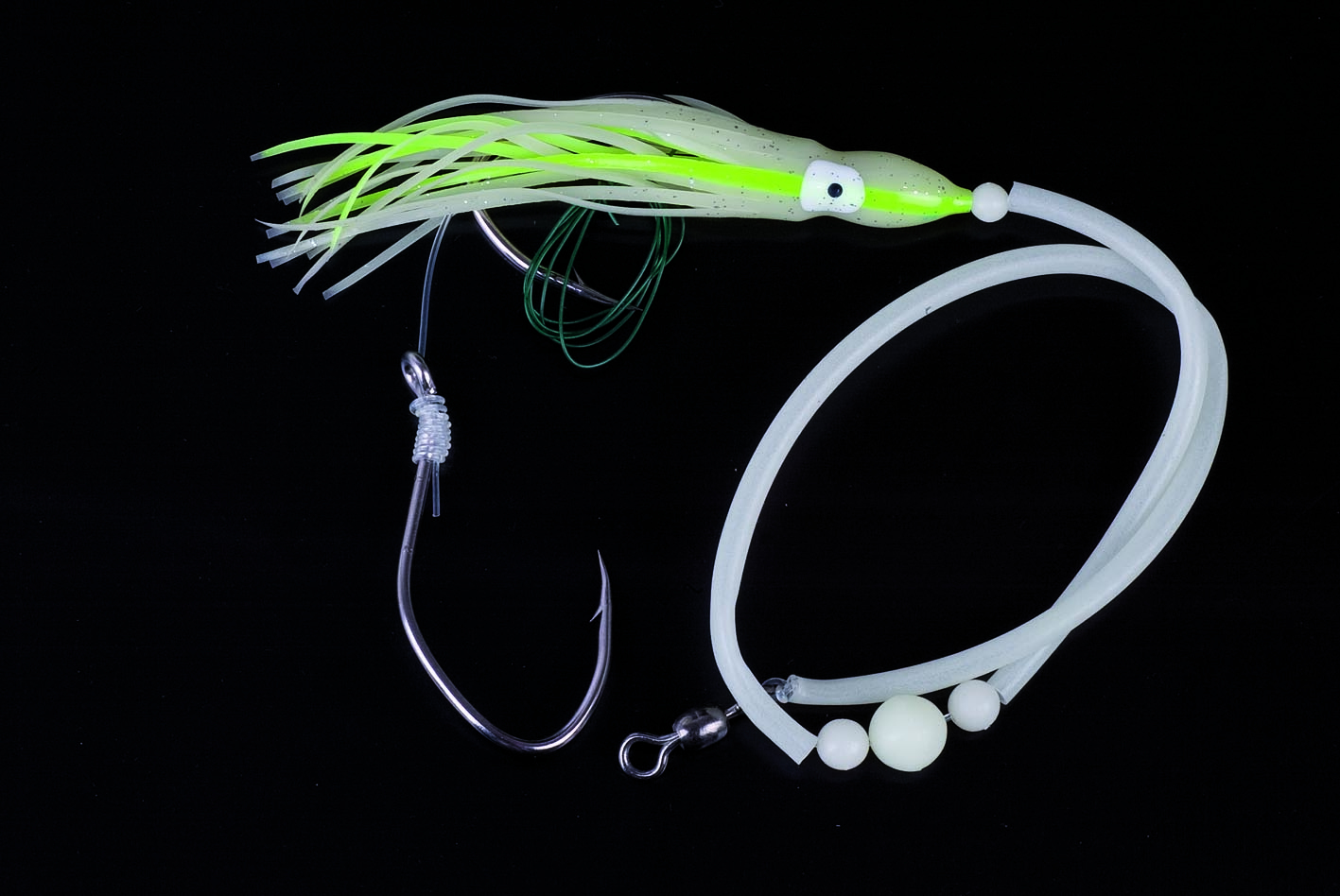 Chobotnice, bužírky i korálky se dají na světle nasvítit. V hloubce 100 až 160 metrů, kde mníky nejčastěji lovíme, je téměř úplná tma. Tento návazec proto láká ryby ze širokého okolí. Na háčky doporučujeme napíchnout filet z makrely, který vám zajistí, že na záběr nebudete dlouho čekat.