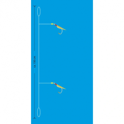Mořský návazec se dvěma háčky velikost 4 potaženými pravou rybí kůží. Fluorescenční barva chartreuse zvyšuje atraktivitu nástrahy při lovu sleďů a makrel. Hlavní vlasec 0,50 mm, přívěs 0,45 mm, délka 150 cm, nosnost 12 kg.