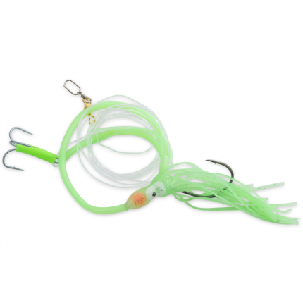 Systém je vybaven bočním ramenem a velkou chobotnicí, která zvyšuje atraktivitu nástrahy. Pevné háčky velikosti 6/0 a trojháčky 8/0 poskytují spolehlivou fixaci úlovku. Hlavní návazcová šňůra o průměru 1,2 mm a délce 160 cm zajišťuje odolnost i proti velkým rybám.