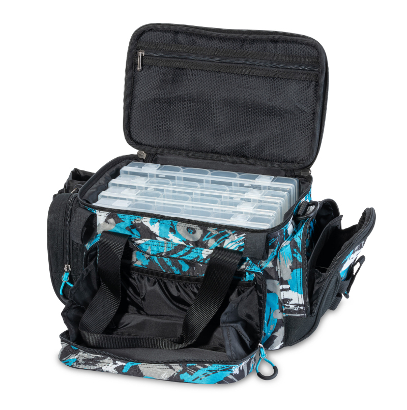 Taška vhodná na gumové nástrahy. Vláčení gum v moři je stále populárnější. Aquantic Master Case se díky 4 krabicím (součást balení) velmi dobře hodí k přepravě vašich nástrah. Kromě toho má taška vnější kapsy na přední straně a na bocích, držák na kleště a držák na kelímek. Samozřejmostí jsou také madla na přenášení a ramenní popruh. rozměry š x h x v: 39 x 25 x 20 cm vč. čtyř krabic (27,5 x 18 x 4,5 cm) materiál: 300 x 300 D ...