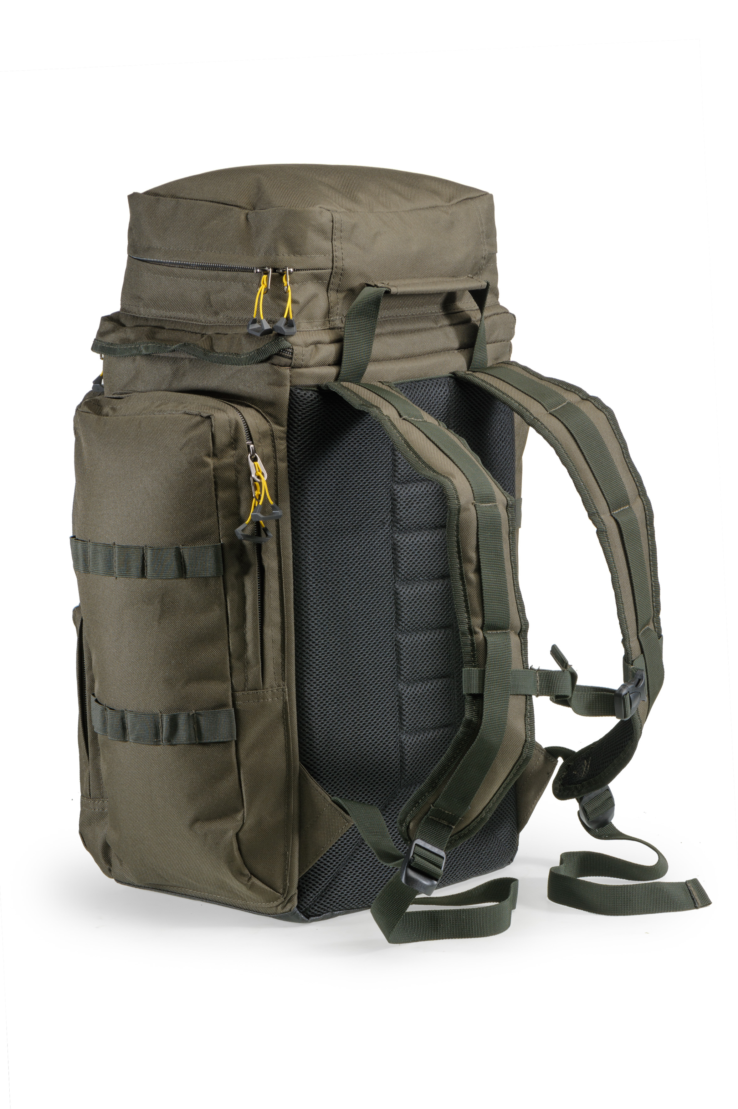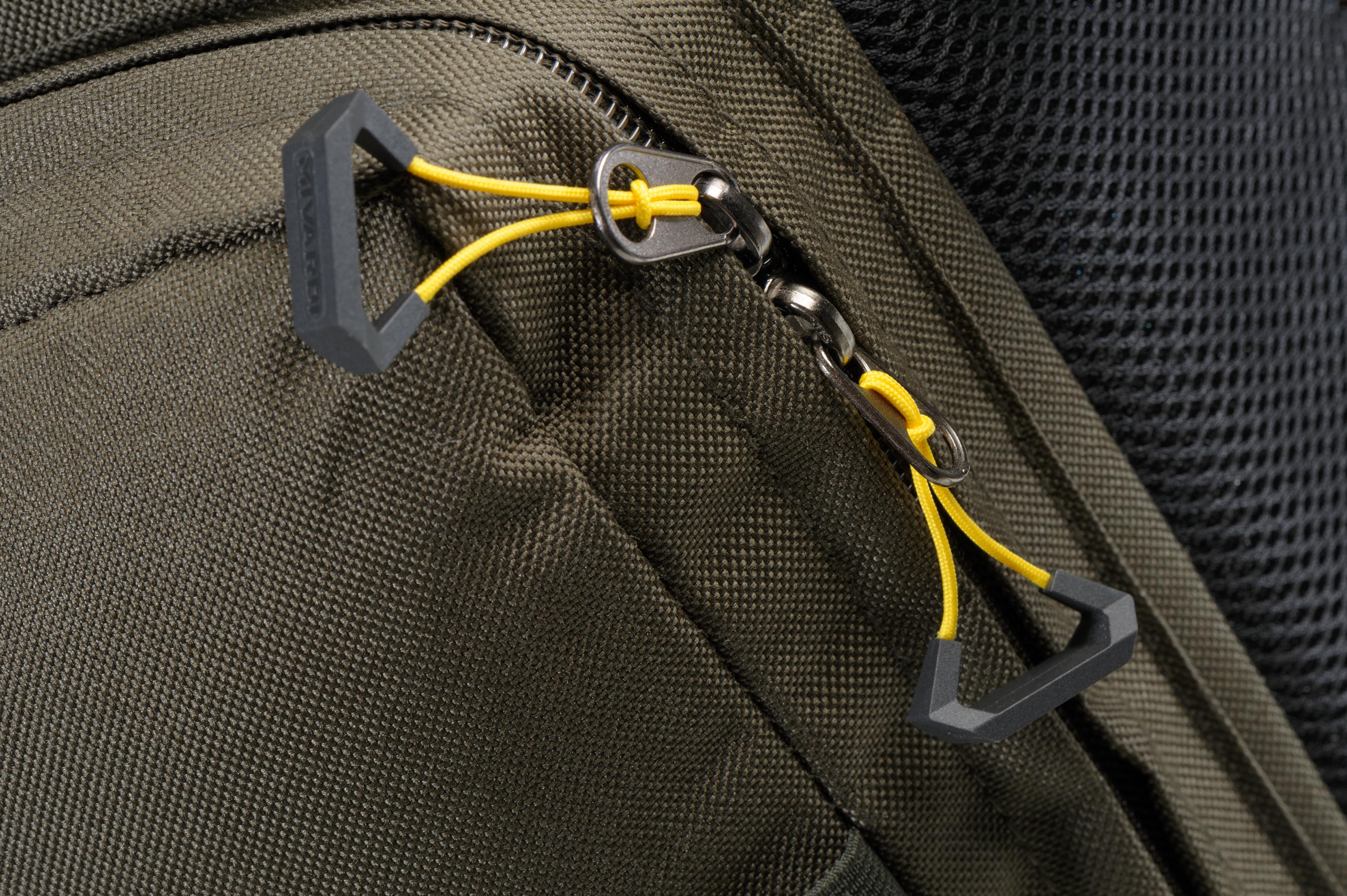 Je vybaven komfortními, anatomicky tvarovanými polstrovanými popruhy včetně posuvné náprsní spony i pevným uchem pro nošení v ruce. Materiál batohu je kompletně nepromokavý a omyvatelný. Dno je navíc vyztužené a zesílené. Hlavní komora je vybavena vnitřní kapsou pro lepší organizaci přenášeného nákladu. Na stranách batohu jsou umístěny rozměrné kapsy s doplňkovými poutky na vidličky a jiné příslušenství. Další kapsy se nacházejí na víku a na přední stěně batohu. Všechny kapsy jsou vybaveny zátěžovými zipy a zdvojenými designovými táhly zipů Mivardi pro velmi snadný přístup dovnitř.