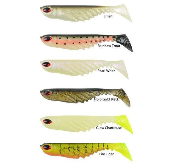 Speciálně tvarovaný ocásek pro dráždivější pohyb (styl kopyto), 3D oči, holografické zbarvení, určeno na štiky, candáty, okouny, sumce, pstruhy či mořský rybolov.