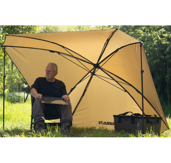 Lehké a skladné brolly pro rychlé výpravy k vodě. Skvěle vás ochrání před větrem, sluncem i deštěm. Díky dvěma přídavným tyčím, které jsou součástí balení, poskytne dostatek stability a ochrany i ve velmi špatném počasí. Snadné rozložení díky spolehlivé deštníkové konstrukci. Součástí balení je i dvoumetrová teleskopická pevná tyč. Brolly tak lze použít i jako klasický deštník. Brolly je vyrobeno z odolné nepromokavé tkaniny 210D s vodním sloupcem 5000 mm a má podlepené švy s dvojitým prošíváním.
