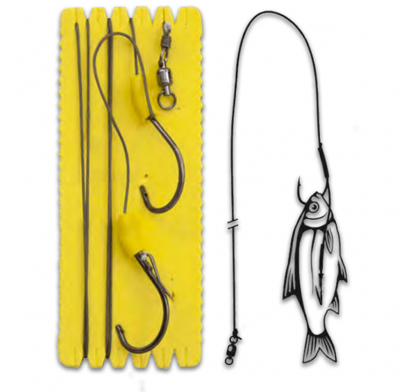 Speciální návazec se dvěma háky: jeden jednohák a jeden Ghost hák k prezentaci mrtvé i živé nástrahy. Délka 1,40 m, velikost 6/0, počet kusů v balení 1 ks, nosnost 100 kg