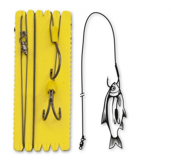 Speciální návazec se dvěma háky: jeden jednohák a jeden Ghost hák k prezentaci mrtvé i živé nástrahy.