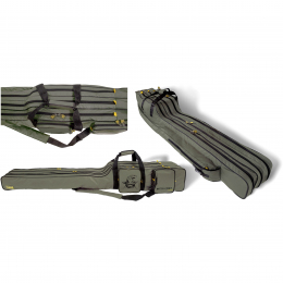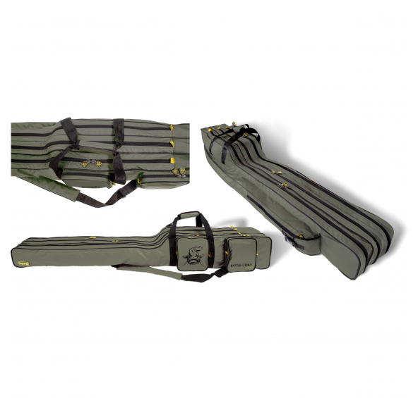 Robustní transportní pouzdro na pruty pro až tři navázané sumcové pruty s extra velkým oddělením na navijáky. V malých postranních kapsách najdou své místo rukavice a různé jiné drobné díly, jako například návazcová šňůra a háčky. Ve velké postranní kapse mohou být bezpečně transportovány vidličky s odbočovači šňůry. Pouzdro se dá pohodlně nosit na zádech jako batoh.