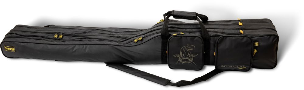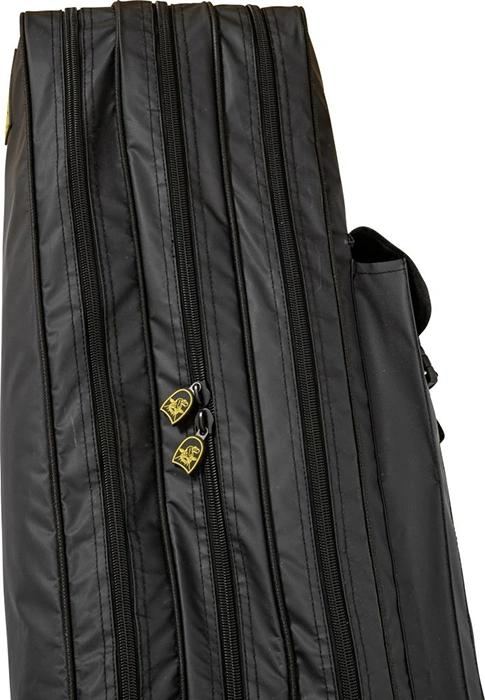 Robustní transportní pouzdro pro až tři kompletně navázané sumcové pruty s velkým oddělením na navijáky.